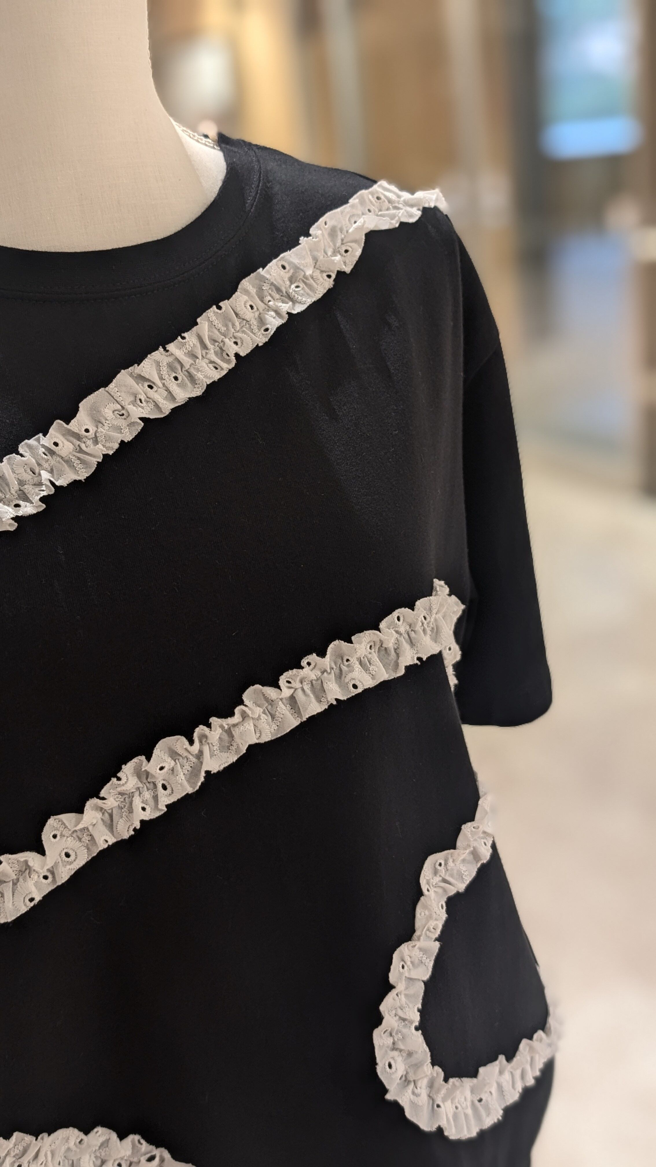 美しいレースのディテールが施されたこのTシャツは、特別な日のお出かけにも、日常使いにもぴったり。柔らかなコットン素材で作られており、肌触りが良く、着心地も快適です。シンプルなデニムと合わせてカジュアルに、またフレアスカートと組み合わせれば、より女性らしい印象を演出します。